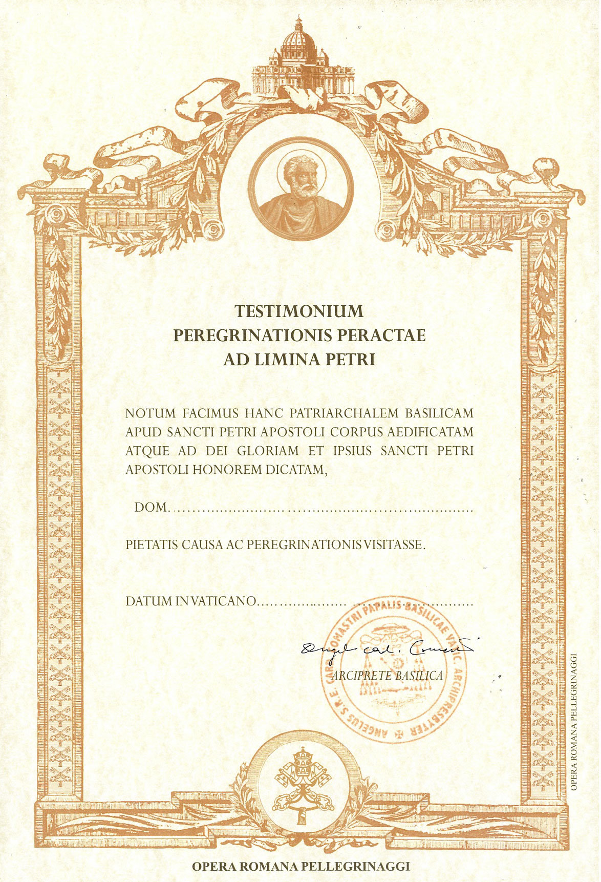 After reaching their destination, by presenting the Credential duly stamped and having covered at least the last 400 km of the route, cyclists and hikers may ask the Vatican Sacristy for a Testimonium, an official document that attests the completion of the pilgrimage along the Via Romea Germanica through the VRG Bike route.