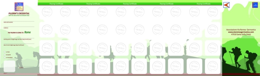 Please note that the issuance of the official Via Romea Germanica Credential is contingent upon payment of a donation. For more information on how to pay and to proceed with the donation, click here.